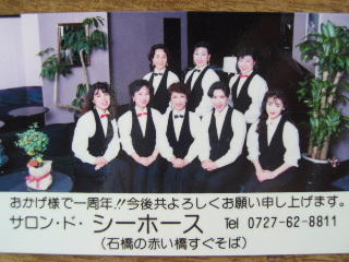 | ・・・・・・と、サロン・ド・シーホースを開店して16年の月日が。トップページのDMにも書かせて頂いたように2004.10.15をもって石橋店をクローズ。2004.10.25に池田店(池田市役所のすぐ東裏)をオープンさせて頂く事になりました。 この店も他店と同じように、多くのお客様とくり返し、くり返し"めぐり逢いのドラマ"を創り上げてきました。書き尽くせないエピソード・・・・・・琴線にふれるお話しに今日は少し触れてみたいと思います。 もの静かで凛としておられ、ご自身のことを表現されないあるお客様。いつもはカラオケなど唄われることもなく迎えた終戦記念日に突然「同期の桜」を唄われました。 ♪貴様と俺とは 同期の桜 同じ兵学校の 庭に咲く〜 あれほど誓った その日も待たず 何故に死んだか 散ったのか〜 はなればなれに 散ろうとも 花の都の靖国神社 春の梢に咲いて会おう♪ 「このバカな戦争でどれだけ多くの、大切な友を、どれだけの大切な人々を亡くしたことか」とはき捨てるように。 その後、涙でグシュグシュのお顔で何分もだまったまま、その方も私たちも誰もしゃべらず・・・時が止まってしまいました。 「酒は泪か溜息か」を唄いながら・・・。 ♪酒は涙か溜息か 悲しい恋の捨てどころ〜 忘れたはずの かの人に 残る心を なんとしよう♪ 涙をポロポロ流しながら・・・そんな恋をしたかね? 一生に一度の恋をするんだよ! と語って下さり停年を迎えられた日のあるお客様。 中学校の時から家庭の事情で、生活に困りピンク産業でバイト。(信じられませんでしたが)高校時代には家にも入れてもらえずダンボールの中で寝ていた娘。(そんなことも本当にあるのですね) そして、その頃には石橋にあるスナックのママ代理までしていた娘。我グループに入社した時にはもう高校も中退していて・・・。でも寿退社までの5年で我グループにはなくてはならない女性スタッフの一人に成長してくれました。 「もう二度とここに帰って来てはいけませんよ!!」 「もう今までのことは全て忘れて新しい道を歩んでね!!」と。 それ以来私の言葉を守り、風のように消え去りました。 サロン・ド・シーホースのRちゃん。 サロン・ド・シーホースはうちのグループの中でも特に、メンタルなスペース。星の数ほど多くの思い出を頂きました。 写真にありますように、スタッフにもそれぞれの歴史、それぞれの青春が。 この日々にカンパイ!! |