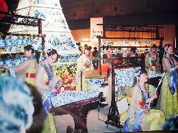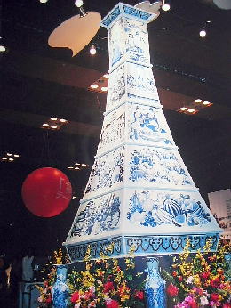 | 4年に一度の大阪での食博覧会が5月8日何事もなく、68万人以上のお客様にご来場頂き、終宴させて頂きました。 今回のこの「宴の塔」も、「景徳鎮」で焼いて会場に設置致しました。 5mの塔です。オープニングセレモニーとして中国から陶器で出来た楽器の生演奏をする為に、美しい女性達がきてくれました。本当に全て陶器のベルや笛で奏でる音色は素晴らしいものでした。 韓国のNANTAも1号館のお手伝いが当たっていた関係で(副館長)、1日中当番のメリット??で観ることが出来ました。2時間も毎回並んで整理券待ちの行列が・・・。いや、本当に主催者の私がニューヨークの人気を知らず、毎回2時間並んで待って、1時間席とりの列に合計3時間も並ぶ人々を見て・・・あらためて、ミュージカルNANTAの凄さを知りました。 他にも、奥村彪生先生の「麺百選」もとても面白かったです。最終日の打ち上げパーティで奥村先生曰く、 「マニアに一つサンプル取られてしもうたわ」 「うそ、先生どうなさるのですか?」と私。 「又、造るがな・・・ハッハッハ」 奥村先生と私は、桂三枝さんの文化人劇を始め、芝居もサンケイホール、グランド花月等、4回もご一緒させて頂いた・・・なかよしグループの川柳仲間!楽しいオープニングセレモニーでした。 |